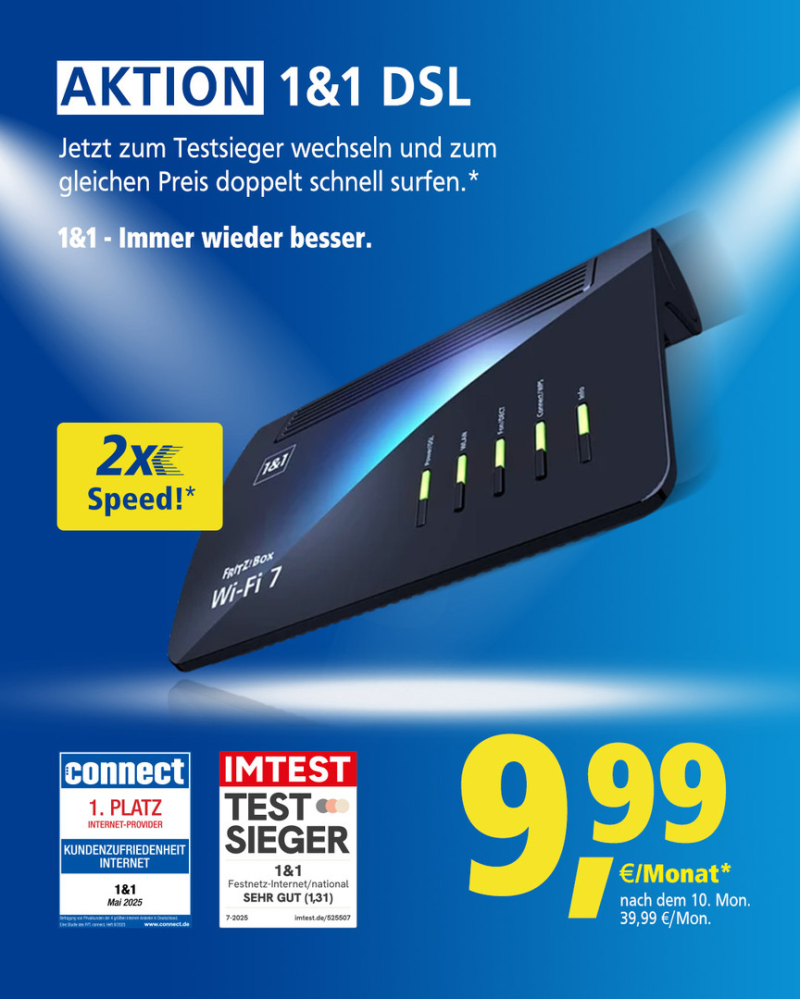 1&1 DSL: Doppelte Geschwindigkeit zum gleichen Preis!